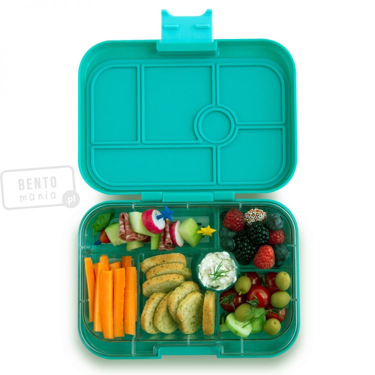 Poniżej zobaczysz lunchbox YumBox Classic z 6 przegródkami w pełnej okazałości i przy okazji pomysł jak przygotować ciekawy posiłek dla dziecka: