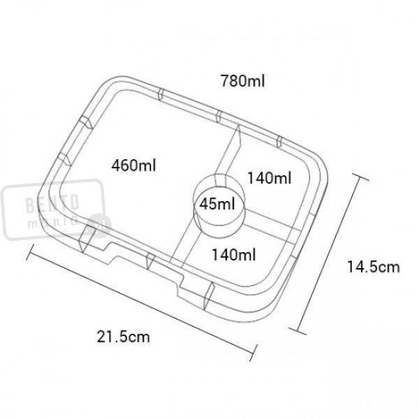 - wymiary takie jak Yumbox Classic (różnią się jedynie liczbą przegródek: Classic ma 6 przegródek, a Panino ma 4 przegródki)