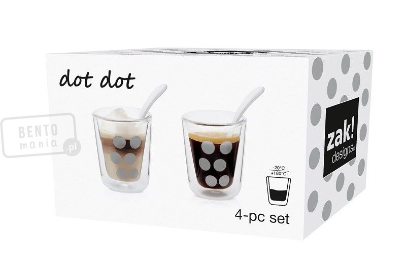 Zak!Designs Zestaw 2 szklanek 75 ml z łyżeczkami, srebrny