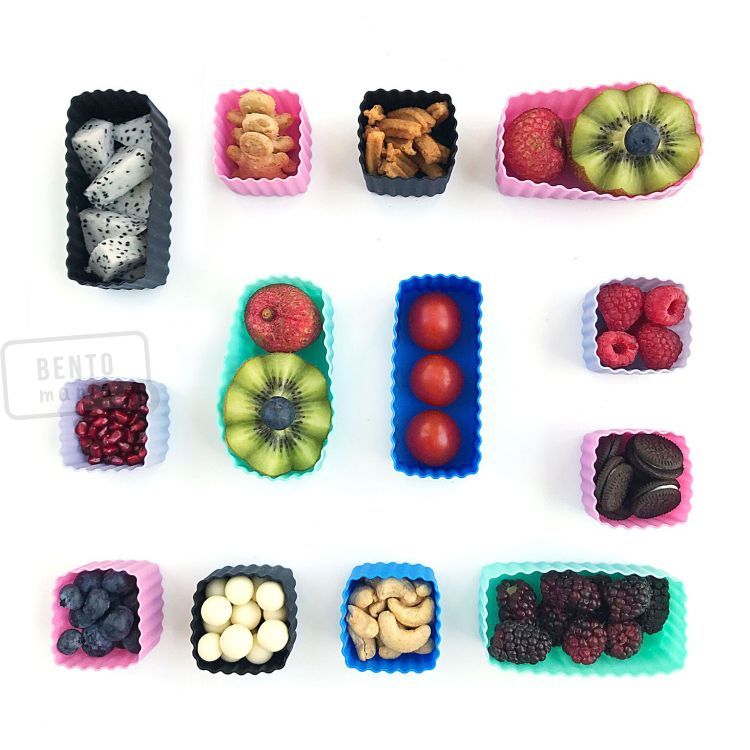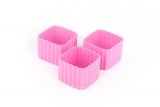 Zestaw 3 silikonowych pojemniczków na sosy i dodatki. Pojemniczki o kwadratowym kształcie, pasują do lunchboxów firmy Little Lunchbox co.