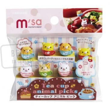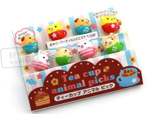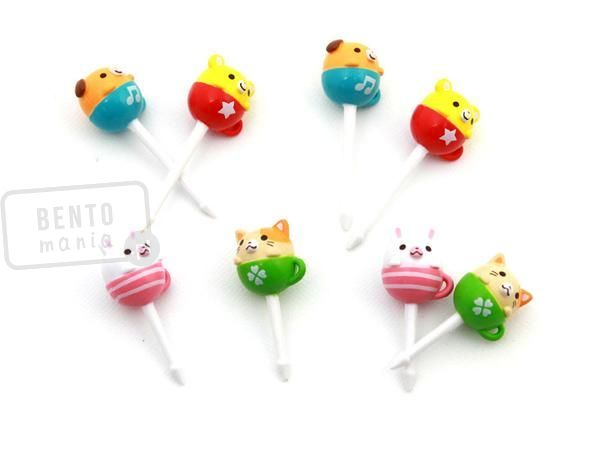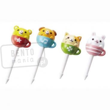 Zestaw do ozdabiania bento - ozdobne wykałaczki, pikery - ZWIERZĄTKA W FILIŻANKACH