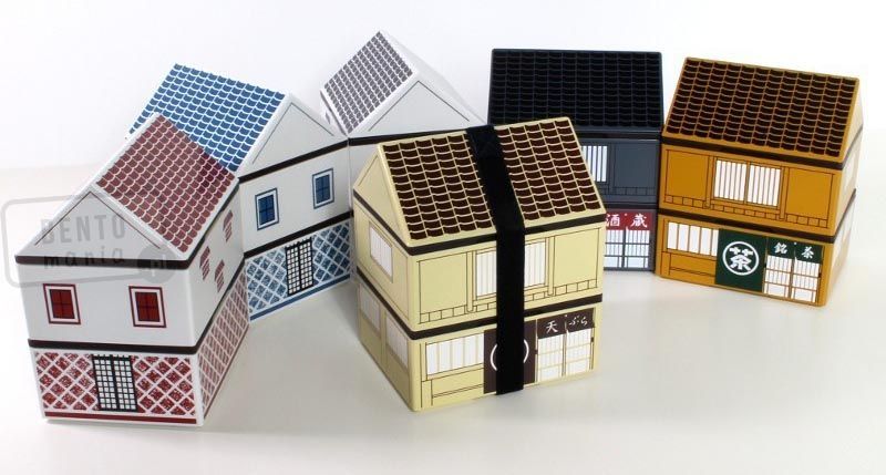 Niebanalny, niepowtarzalny lunchbox w kształcie małego, tradycyjnego, japońskiego domu (drewniane domy spotykane w miastach japońskich, w szczególności w Kioto. Domy te służą jako rezydencje, ale także jako miejsca pracy - warsztaty, butiki, sklepy, restauracje - dla mieszkańców).