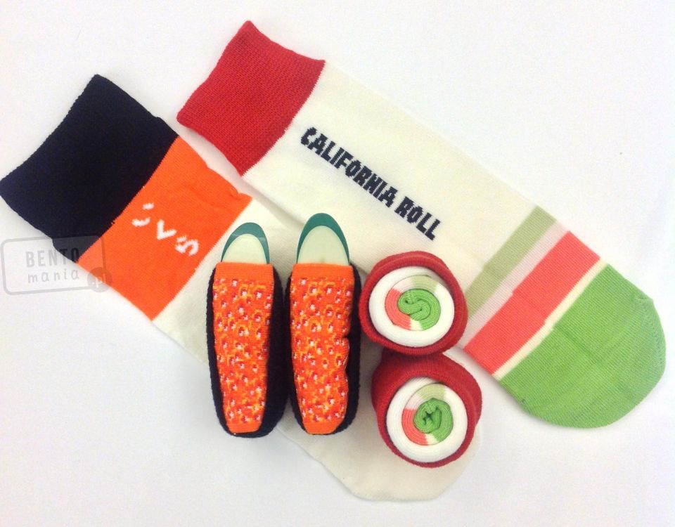 • zwinięte wyglądają jak prawdziwe japońskie sushi (skarpetki w kształcie sushi)