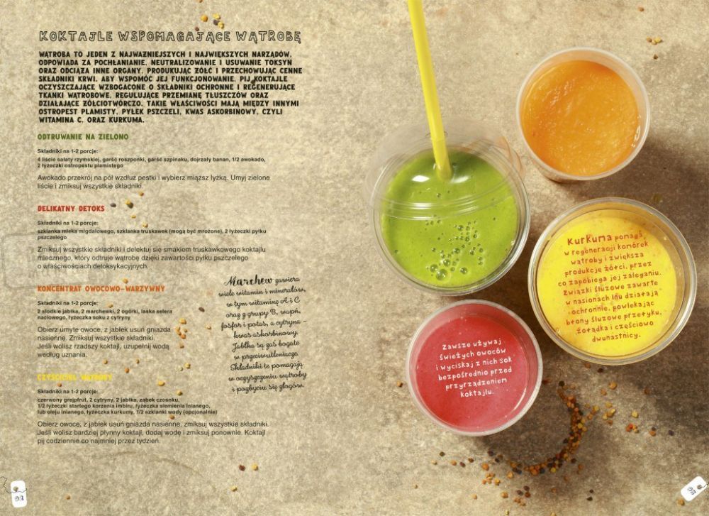 Wszystkie koktajle zamieszczone w książce przygotujesz z łatwo dostępnych produktów, a obok przepisu znajdziesz informację na temat jego działania i dobroczynnego wpływu na organizm.