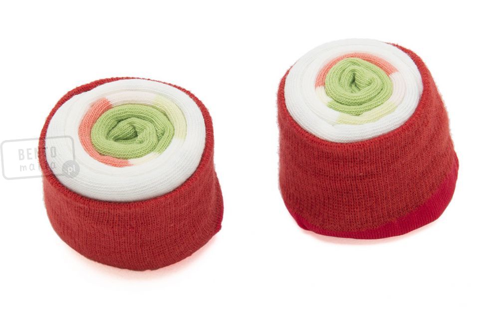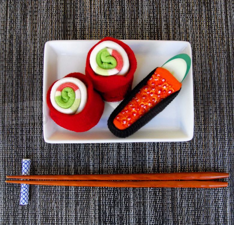 • zwinięte wyglądają jak prawdziwe japońskie sushi (skarpetki w kształcie sushi)