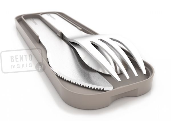 Sztućce MONBENTO Pocket Coton (szaro-beżowe) - stalowe