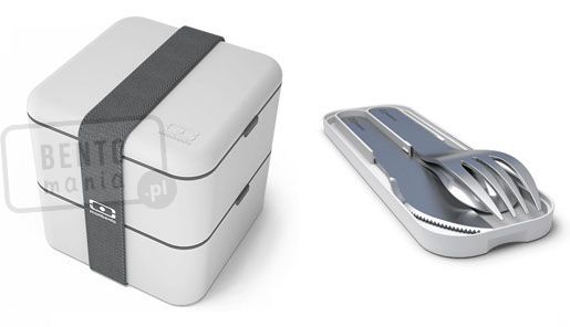 MONBENTO Square Coton (jasno-szary) - dwupoziomowy lunchbox (Made in France)